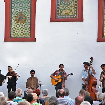 Für intime Musikerlebnisse mit Pop, Soul, Klezmer oder Klassik sind die Konzerte im Veitshöchheimer Synagogenhof eine Empfehlung (immer sonntags vom 2. August bis zum 6. September 2026, www.tourismus-veitshoechheim.de). In sein Stadtgärtchen am Mainkai bittet Marktheidenfeld: Dort stehen am 24. und 25. Juli 2026 die Singer-Songwriterin Esther Filly und die Weltmusik-Band Inswingtief auf der Bühne (www.marktheidenfeld.de).