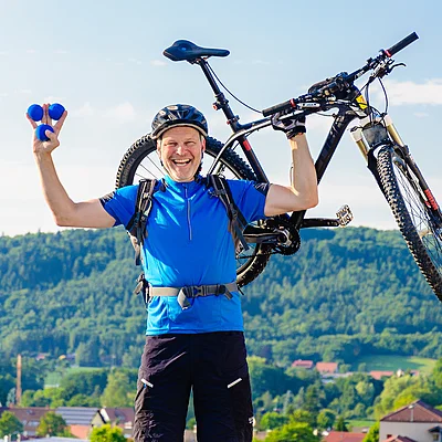 Das Nürnberger Land eignet sich hervorragend zum Mountainbiken. Wer sich selbst davon überzeugen will, geht mit Ralf „Pancho“ Komischke auf Tour. Er ist erfahrener E-Mountainbike-Guide, Fahrtechniktrainer, Jonglier-Lehrer und Coach für neurolinguistisches Programmieren in einer Person (www.panchooo.de).