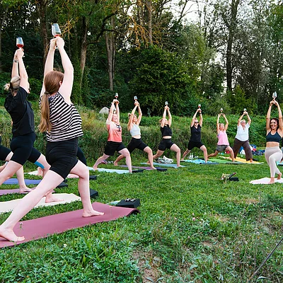 Zum Fisch passt ein Glas Frankenwein. Feine Bio-Weine stammen vom Weingut Staudt im Fränkischen Weinland. Dort entspannt man aber nicht nur beim Wein allein, sondern auch beim Yoga in den Weinbergen oder bei Aquarellkursen – Weinprobe immer inklusive (www.weingut-staudt.de).